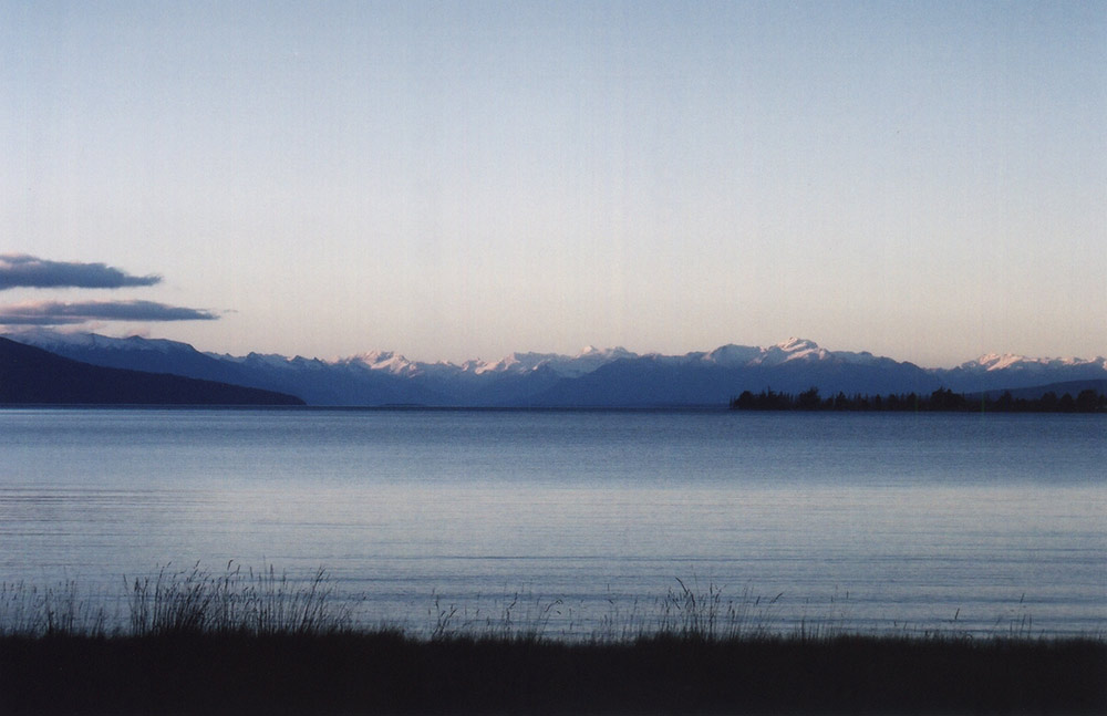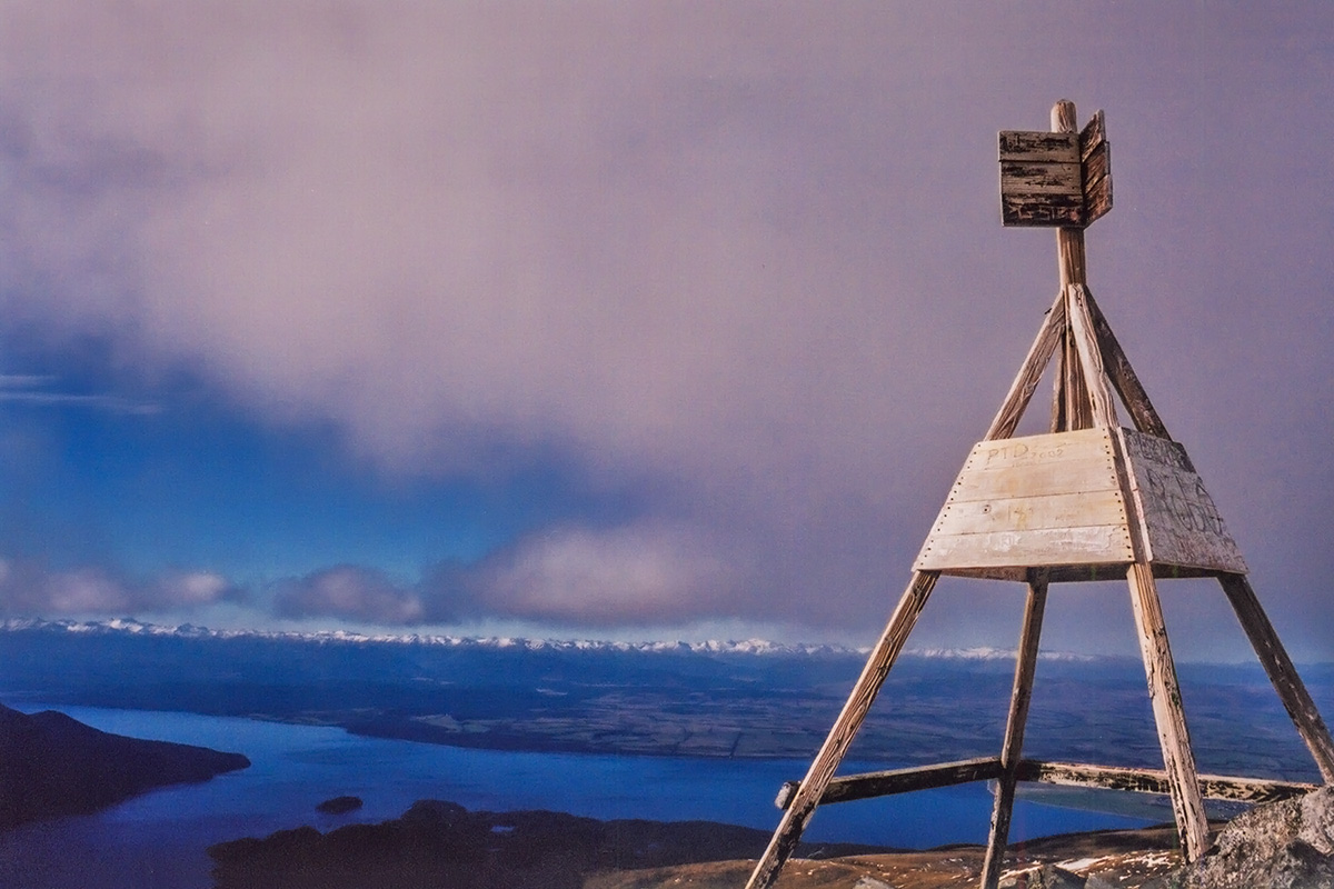 Notes: A day out walking on the Kepler Track, one of New Zealand's many great tramping routes. Walking to the top of Mt Luxmore and back from the Lake Te Anau sluice control gates was a big and tiring task. The walk began on the level, easing through the lakeshore forest of beech, rimu and ferns. After an hour I encountered Scott, a Canadian, also aiming to climb the mountain and return in a day. We had a steep climb up through the forest, pass limestone cliffs, before finally reaching the treeline and a flatter path to the Mt Luxmore Hut.