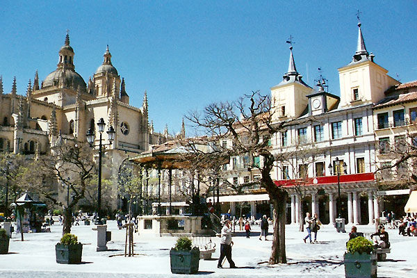 Segovia is a small city northwest of Madrid. I reached it via a two hour train journey from Madrid-Chamartin. The day started badly when I misjudged how long it would take to reach Chamartin from my hostal, and arrived at the station only in time to give a two-fingered wave goodbye to my intended train. A warm, sunny day, ideal for a day trip out of the capital, and I have to wait two hours for the next train.