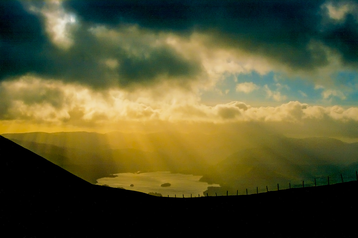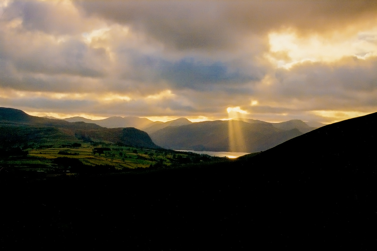 Notes: An overcast and windy winter's day, and the first chance to walk off the Christmas dinner. A break in the clouds on the approach to Skiddaw Man, the shafts of sunlight breaking through over Derwent Water. The wind on the summit top bitterly cold and relentless.