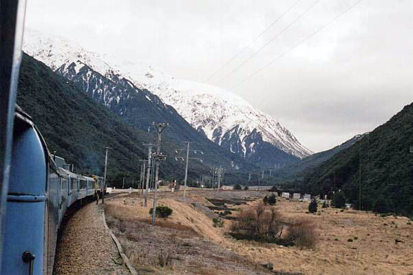 Approaching the Southern Alps across the wide Canterbury plains from Christchurch, I stood outside on the TranzAlpine's observation carriage, well wrapped up against a bitterly cold wind. Soon the train was winding alongside the gorges of the Waimakariri River, across precarious bridges and through tunnels as it entered the wilderness amongst the mountains.